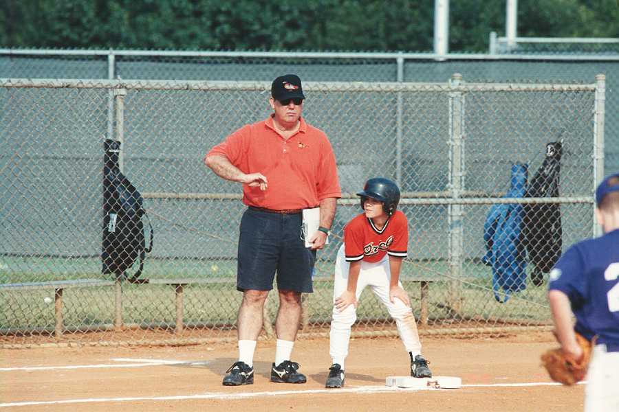 Alex hit a homer on this swing. Coach T. tells Alex to get moving.